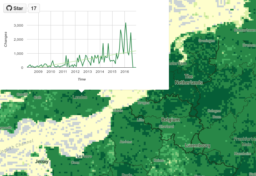 • [1] Лукас Мартинелли (Lukas Martinelli) опубликовал карту ОСМ-активности, глобальный тепловой карты OpenStreetMap, где можно увидеть ряд изменений, внесённых в OSM на каждом тайле, данные начиная с 2008 доступны на Github. Лукас пишет: “Когда вы нажимаете в выбранном месте, то появится график, по которому вы сможете понять был в том месте импорт или это была длительная работа.”